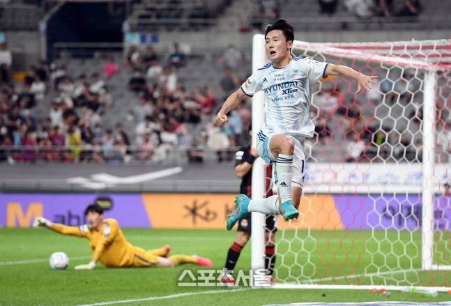 울산 현대 엄원상이 22일 서울월드컵경기장에서 열린 하나원큐 K리그1 2022 FC서울과의 경기에서 역전골을 넣고 기뻐하고 있다. 2022. 6. 22.