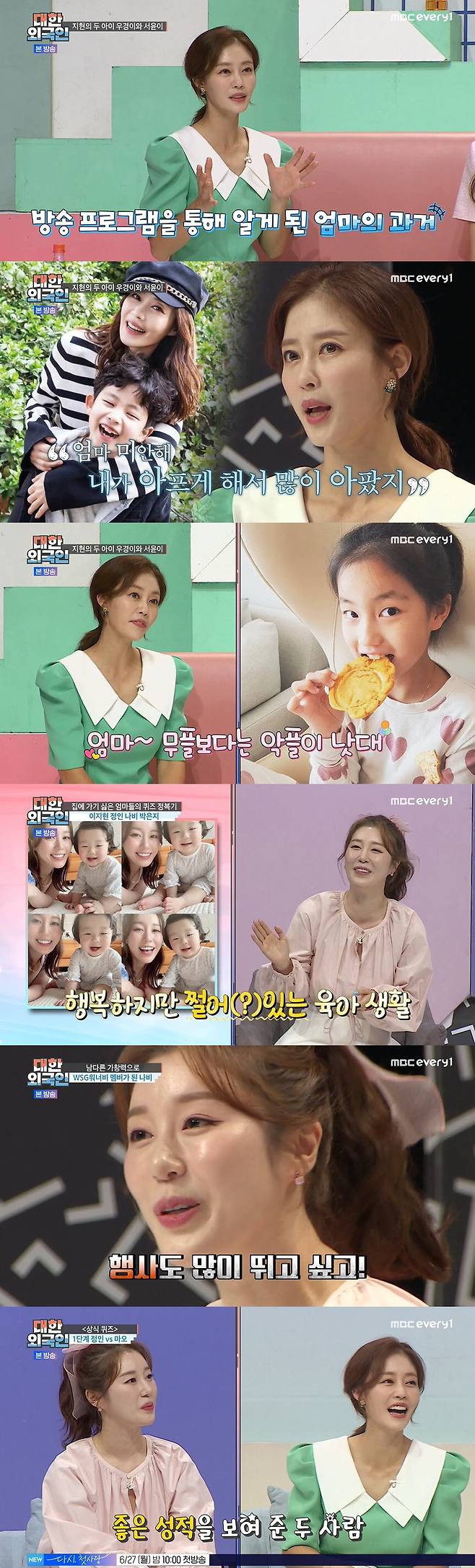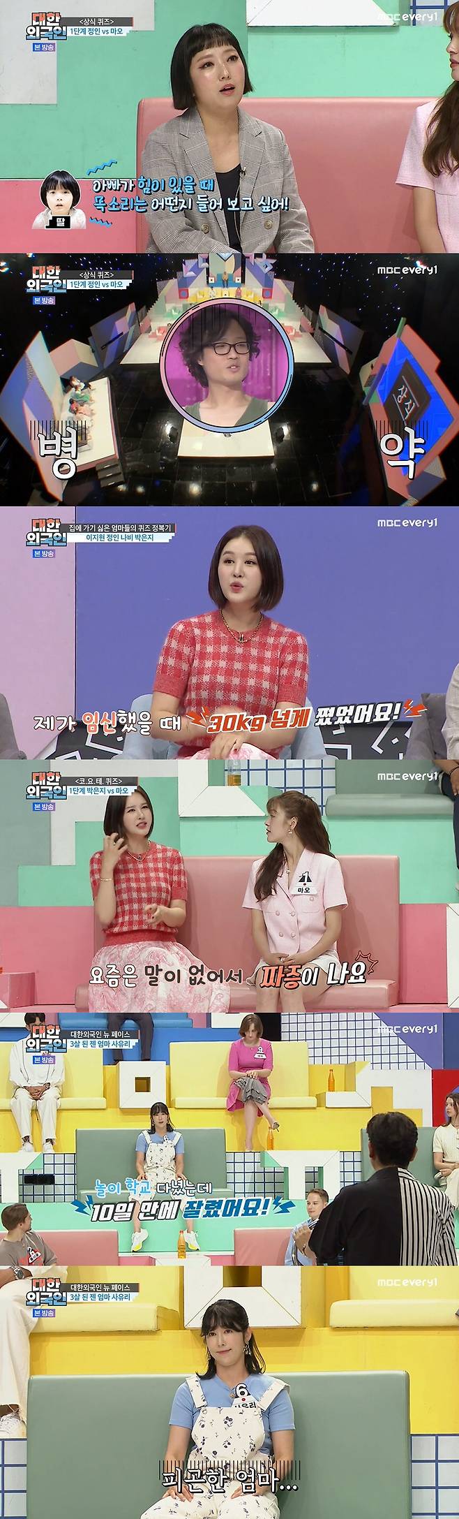 22일 방송된 MBC에브리원 '대한외국인'은 '나 오늘 집에 안 갈래' 특집으로 '연예계 워킹맘' 이지현, 나비, 박은지, 정인이 출연해 퀴즈 대결을 펼쳤다.