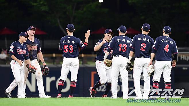 22일 광주 기아챔피언스필드에서 KBO리그 KIA와 롯데의 경기가 열렸다. 10회 연장 끝에 롯데가 KIA에 7대 5로 승리했다. 경기 종료 후 승리의 기쁨을 나누고 있는 롯데 선수들. 광주=송정헌 기자songs@sportschosun.com/2022.06.22/