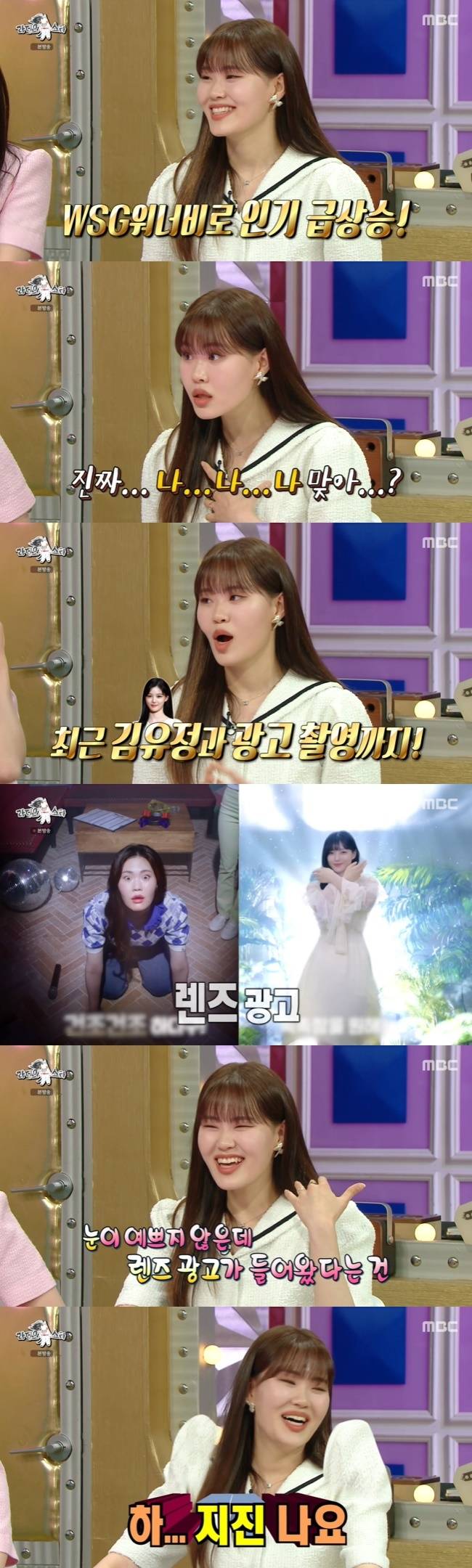 유튜브에서 화제를 얻은 후 최근 WSG워너비로 인기가 급상승한 엄지윤은 인기를 실감하냐는 질문에 "실감을 못했는데 '라디오스타' 섭외가 왔을 때 매니저 오빠한테 '나 맞아? 라디오 아니고 '라디오스타' 맞아?'라고 했다. 실감이 거기서 났다"라며 "이번에 김유정 님과 광고도 찍었다"라고 자랑했다.