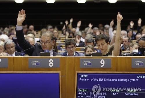 epa10027751 Members of European parliament Green group leader Philippe Lamberts and Ska Keller vote on revision of the Emission trading system at plenary session of the European Parliament in Brussels, Belgium, 22 June 2022. MEPs voted on three key EU draft laws to combat climate change by reducing greenhouse gas emissions by at least 55 percent by 2030 and to protect jobs and citizens. The European Parliament will begin negotiations with EU governments on the final shape of these laws. EPA/OLIVIER HOSLET