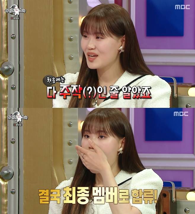 엄지윤은 "그래서 처음에 전 당연히 주작인 줄 알았다. 내정자 다 있고 나는 그냥 병풍으로 나가는 줄 알았다. 블라인드 오디션을 보는데 자꾸 김숙 선배님이 자우림 같다고 저를 떨어뜨렸다. 진짜 주작이구나 하면서 마음 비웠는데 보류전 가서 붙고, 최종까지 가서 붙으며 이건 찐이구나 했다"고 털어놨다.