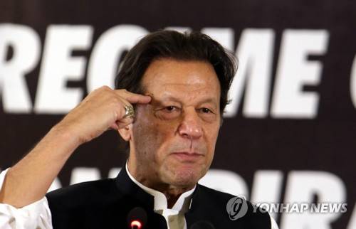 epa10028509 Pakistan's former Prime Minister and current head of opposition party Pakistan Tehreek-e-Insaf (PTI), Imran Khan attends a seminar on the subject of 'Regime Change' in Islamabad, Pakistan, 22 June 2022. Khan has been demanding the Surpeme Court to form a commision to investigate the ouster of his government through a no-cofidence vote in the parliament that he claimed was backed by the US after he visited the Russia. EPA/SOHAIL SHAHZAD