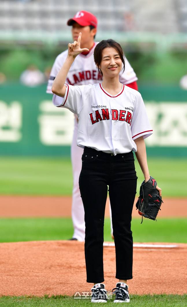 배우 박하선이 22일 인천SSG랜더스필드에서 열린 2022프로야구 SSG랜더스와 두산베어스의 경기에서 시구를 하고 있다. 2022.6.22.