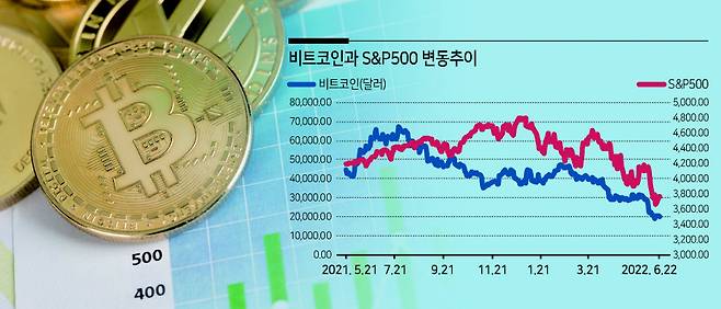 코로나19가 창궐하면서 가상자산은 주식 등 전통금융자산의 ‘대안’으로 급부상했다. 투자저변이 확대되면서 전통금융시장과 상관관계가 높아지더니, 이젠 오히려 주식시장의 가늠좌가 됐다는 분석까지 등장했다. 실제 22일(현지시간) 미국 연방준비제도(Fed·연준)의 경기 침체 가능성 제기에 뉴욕 증시가 하락하면서 비트코인 가격은 다시 2만달러선을 밑돌았다.