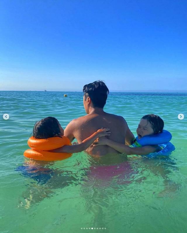 세 사람은 바닷가에서 함께 수영을 하고, 마이큐의 등에 매달리고 목마를 타는 등 실제 아빠처럼 다정한 모습을 보였다.