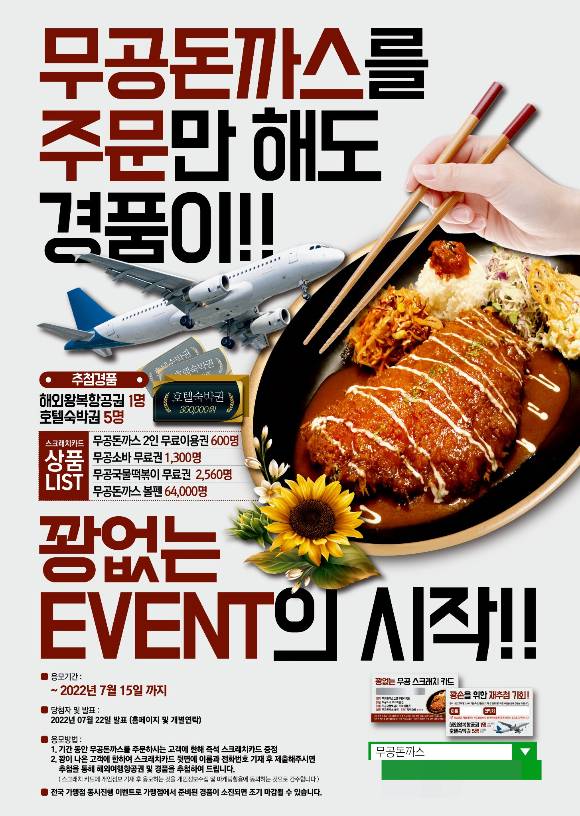무공돈까스가 '꽝없는 스크래치카드 증정이벤트'를 7월15일까지 진행된다.