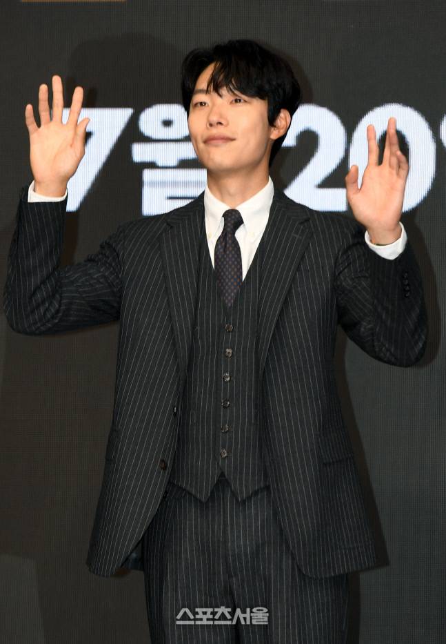 배우 류준열이 23일 서울 영등포구 콘래드서울호텔에서 진행된 영화 ‘외계+인 1부’ 제작보고회에서 취재진을 향해 포즈를 취하고 있다. 2022. 6. 23.