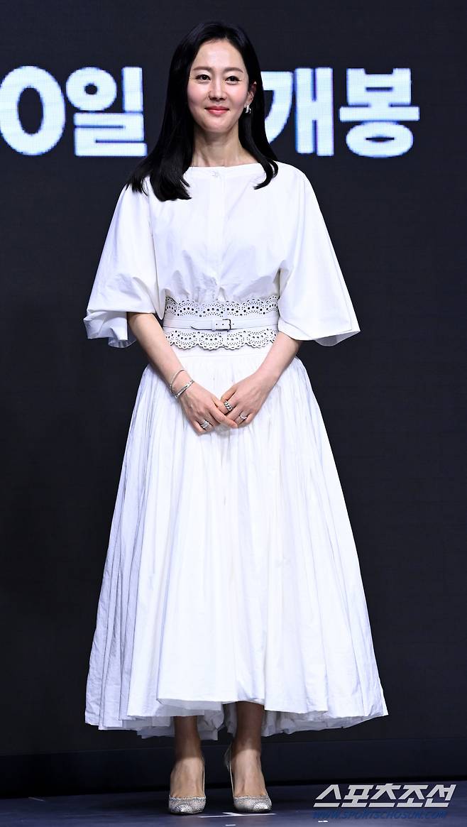 영화 '외계+인' 1부의 제작보고회가 23일 여의도 콘래드서울에서 열렸다. '외계+인' 1부는 고려 말 소문 속의 신검을 차지하려는 도사들과 2022년 인간의 몸 속에 수감된 외계인 죄수를 쫓는 이들 사이에 시간의 문이 열리며 펼쳐지는 이야기를 그린 영화다. 염정아가 포토타임을 갖고 있다. 허상욱 기자wook@sportschosun.com/2022.06.23/