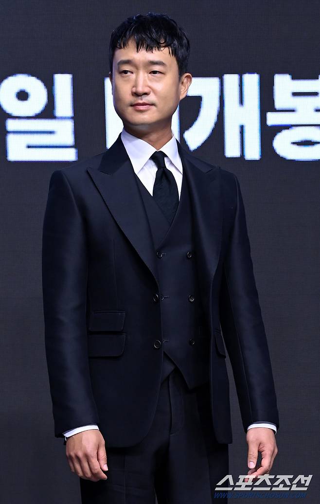 영화 '외계+인' 1부의 제작보고회가 23일 여의도 콘래드서울에서 열렸다. '외계+인' 1부는 고려 말 소문 속의 신검을 차지하려는 도사들과 2022년 인간의 몸 속에 수감된 외계인 죄수를 쫓는 이들 사이에 시간의 문이 열리며 펼쳐지는 이야기를 그린 영화다. 조우진이 포토타임을 갖고 있다. 허상욱 기자wook@sportschosun.com/2022.06.23/
