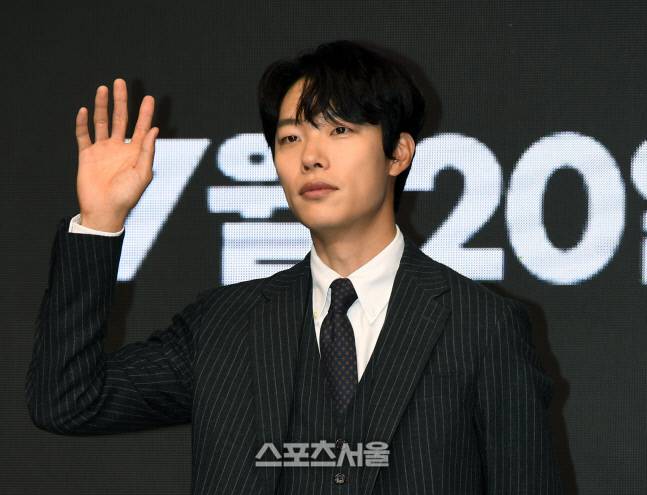배우 류준열이 23일 서울 영등포구 콘래드서울호텔에서 진행된 영화 ‘외계+인 1부’ 제작보고회에서 취재진을 향해 포즈를 취하고 있다. 2022. 6. 23.