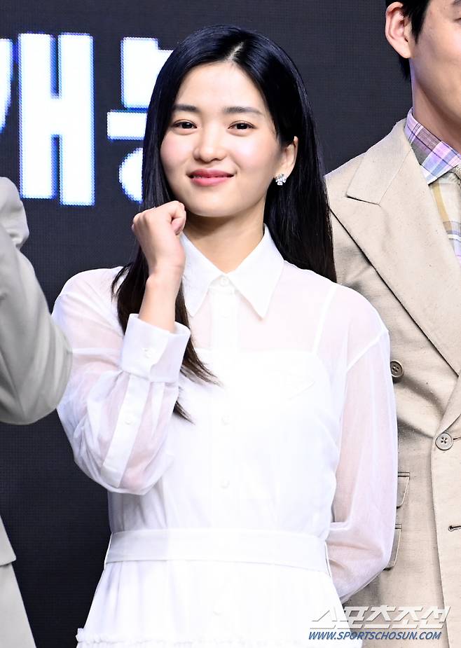 영화 '외계+인' 1부의 제작보고회가 23일 여의도 콘래드서울에서 열렸다. '외계+인' 1부는 고려 말 소문 속의 신검을 차지하려는 도사들과 2022년 인간의 몸 속에 수감된 외계인 죄수를 쫓는 이들 사이에 시간의 문이 열리며 펼쳐지는 이야기를 그린 영화다. 김태리가 포토타임을 갖고 있다. 허상욱 기자wook@sportschosun.com/2022.06.23/