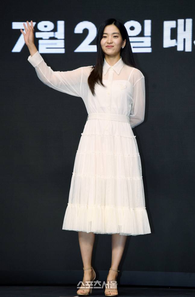 배우 김태리가 23일 서울 영등포구 콘래드서울호텔에서 진행된 영화 ‘외계+인 1부’ 제작보고회에서 취재진을 향해 포즈를 취하고 있다. 2022. 6. 23.