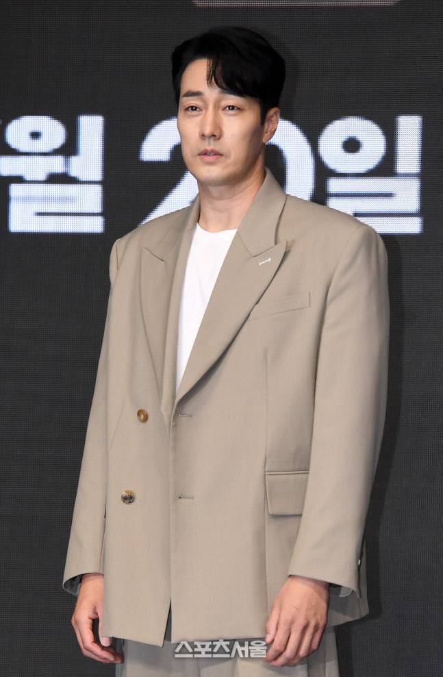 배우 소지섭이 23일 서울 영등포구 콘래드서울호텔에서 진행된 영화 ‘외계+인 1부’ 제작보고회에서 취재진을 향해 포즈를 취하고 있다. 2022. 6. 23.