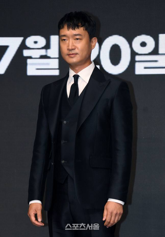 배우 조우진이 23일 서울 영등포구 콘래드서울호텔에서 진행된 영화 ‘외계+인 1부’ 제작보고회에서 취재진을 향해 포즈를 취하고 있다. 2022. 6. 23.