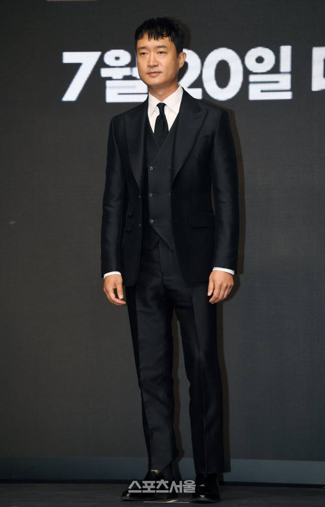 배우 조우진이 23일 서울 영등포구 콘래드서울호텔에서 진행된 영화 ‘외계+인 1부’ 제작보고회에서 취재진을 향해 포즈를 취하고 있다. 2022. 6. 23.