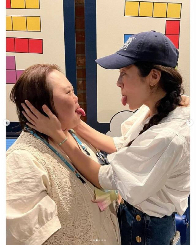이어 한지민은 정은혜와 포옹을 하고 혀를 빼꼼 내밀고 서로를 놀리는 듯한 포즈를 취해 웃음을 자아냈다.