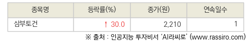 [fnRASSI]오늘의 상한가, 삼부토건 30.0% ↑