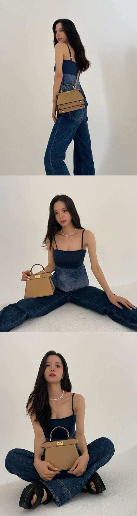 또 다른 사진 속 그는 상하의 모두 청색으로 맞춘 패션 감각을 자랑하며 다채로운 포즈를 취했다. 바닥에 편히 앉은 포즈부터 가방을 부각하는 포즈까지 팔색조 매력을 드러낸 그다.