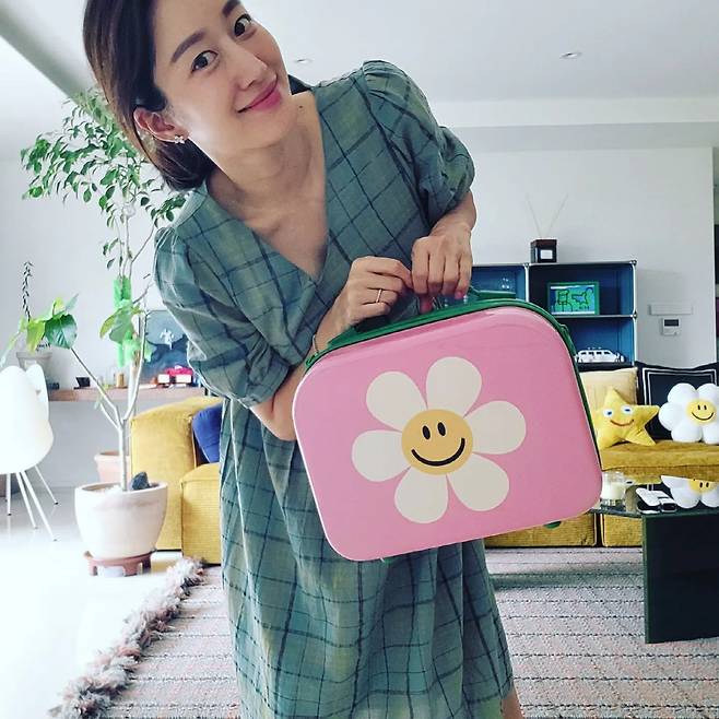 공개한 사진 속 전혜빈은 협찬으로 받은 핸드백을 들고 밝은 미소를 짓고 있다.