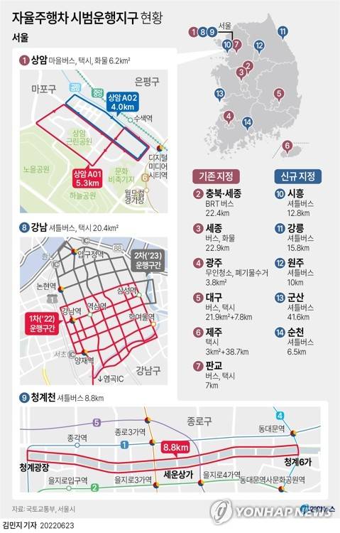 (서울=연합뉴스) 김민지 기자 = 올해 하반기부터 자율주행차 실증 구간이 기존 7개 지구에서 14개 지구로 확대된다.