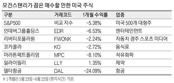 이 밖에 코카콜라와 글로벌 제약사 일라이릴리는 배당수익과 더불어 주가 방어력을 기대할 만한 종목으로 지목됐다. 22일 기준 코카콜라와 일라이릴리 배당 수익률은 각각 2.88%, 1.28%다. 특히 일라이릴리는 개발 중인 체중 감량제가 비만 수술에 맞먹는 효과를 낸다는 긍정적인 임상 결과가 나와 투자 기대감을 산다.