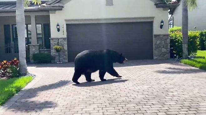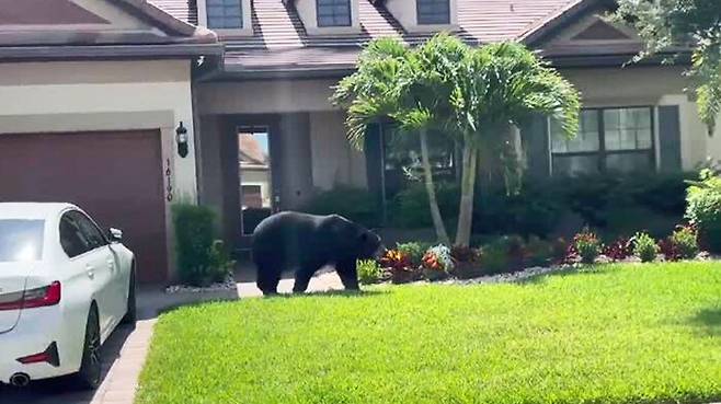 미국 플로리다주 네이플스 고급 주택단지에 야생 흑곰이 나타났습니다.