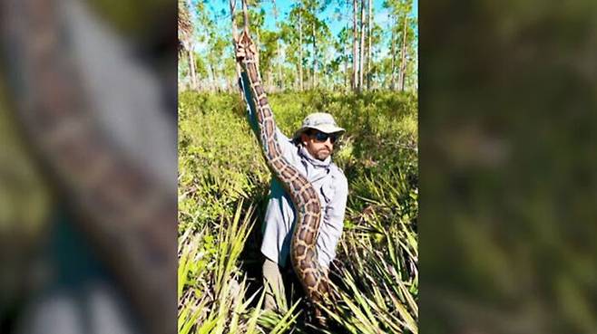 미국 플로리다주의 숲에서 초대형 버마왕뱀이 잡혔습니다.