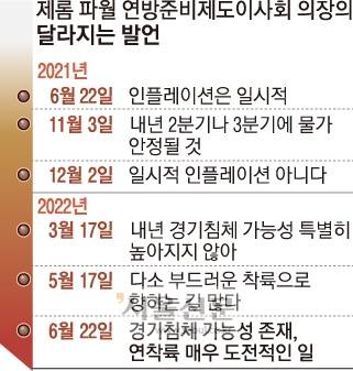 제롬 파월 미국 연방준비제도이사회(연준) 의장이 가파른 기준금리 인상으로 인한 경기 침체 가능성을 처음 인정했다.