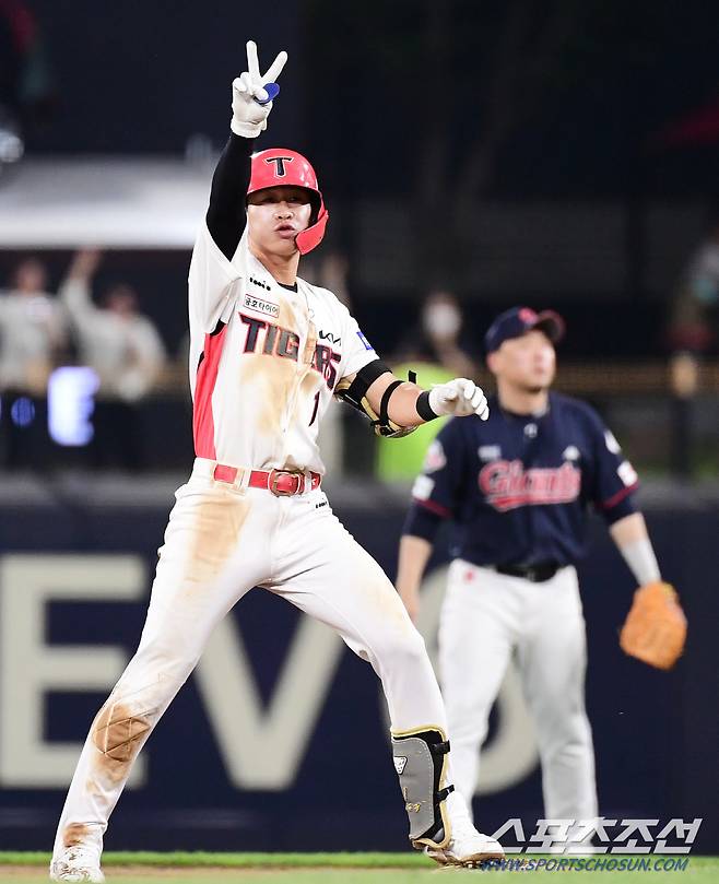 23일 광주 기아챔피언스필드에서 KBO리그 KIA와 롯데의 경기가 열렸다. 8회 1타점 2루타를 날린 KIA 박찬호. 광주=송정헌 기자songs@sportschosun.com/2022.06.23/