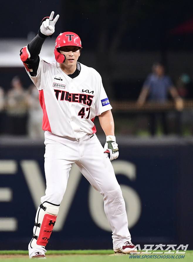 23일 광주 기아챔피언스필드에서 KBO리그 KIA와 롯데의 경기가 열렸다. 8회 1타점 2루타를 날린 KIA 나성범. 광주=송정헌 기자songs@sportschosun.com/2022.06.23/