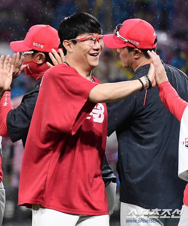 23일 광주 기아챔피언스필드에서 KBO리그 KIA와 롯데의 경기가 열렸다. KIA가 롯데에 승리하며 위닝시리즈를 달성했다. 경기 종료 후 승리의 기쁨을 나누고 있는 KIA 양현종. 광주=송정헌 기자songs@sportschosun.com/2022.06.23/