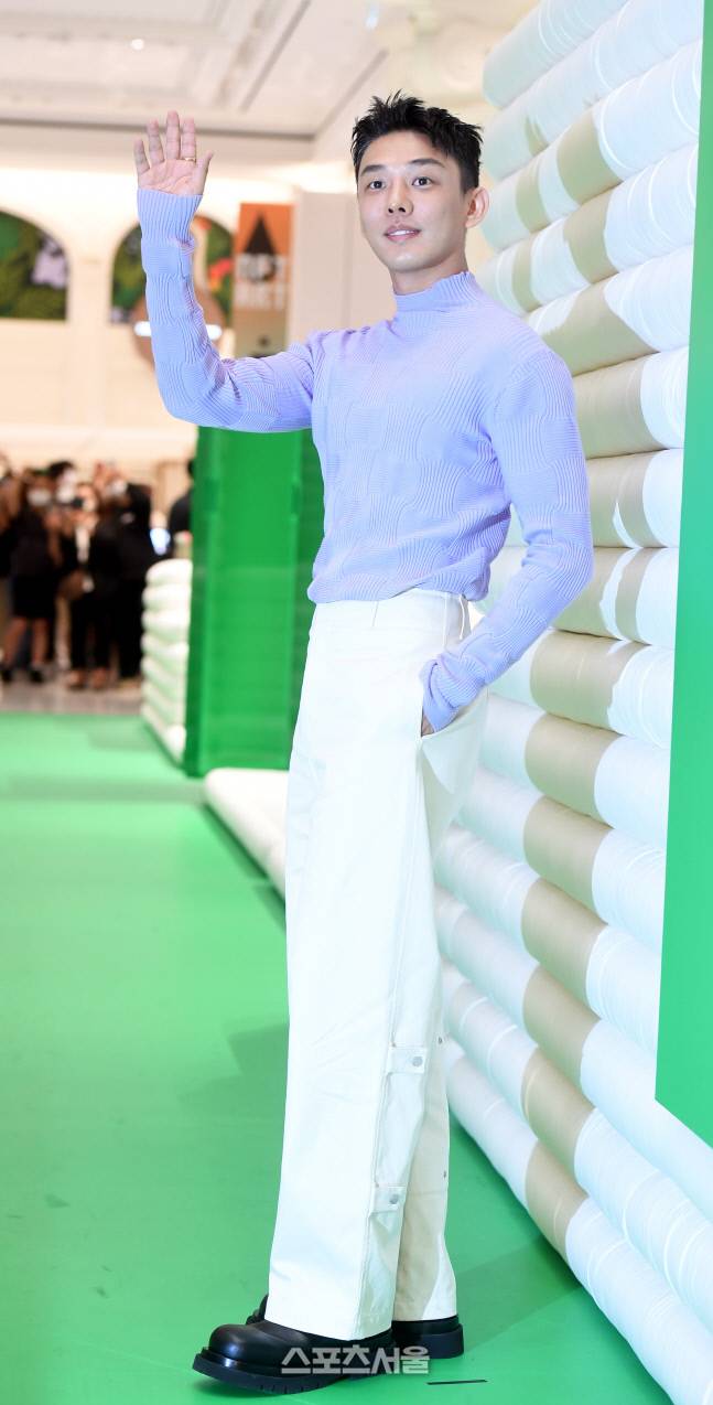 유아인이 23일 서울 신세계백화점 강남에서 열린 한 패션 브랜드 팝업스토어 오픈행사에 참석해 포즈를 취하고 있다.