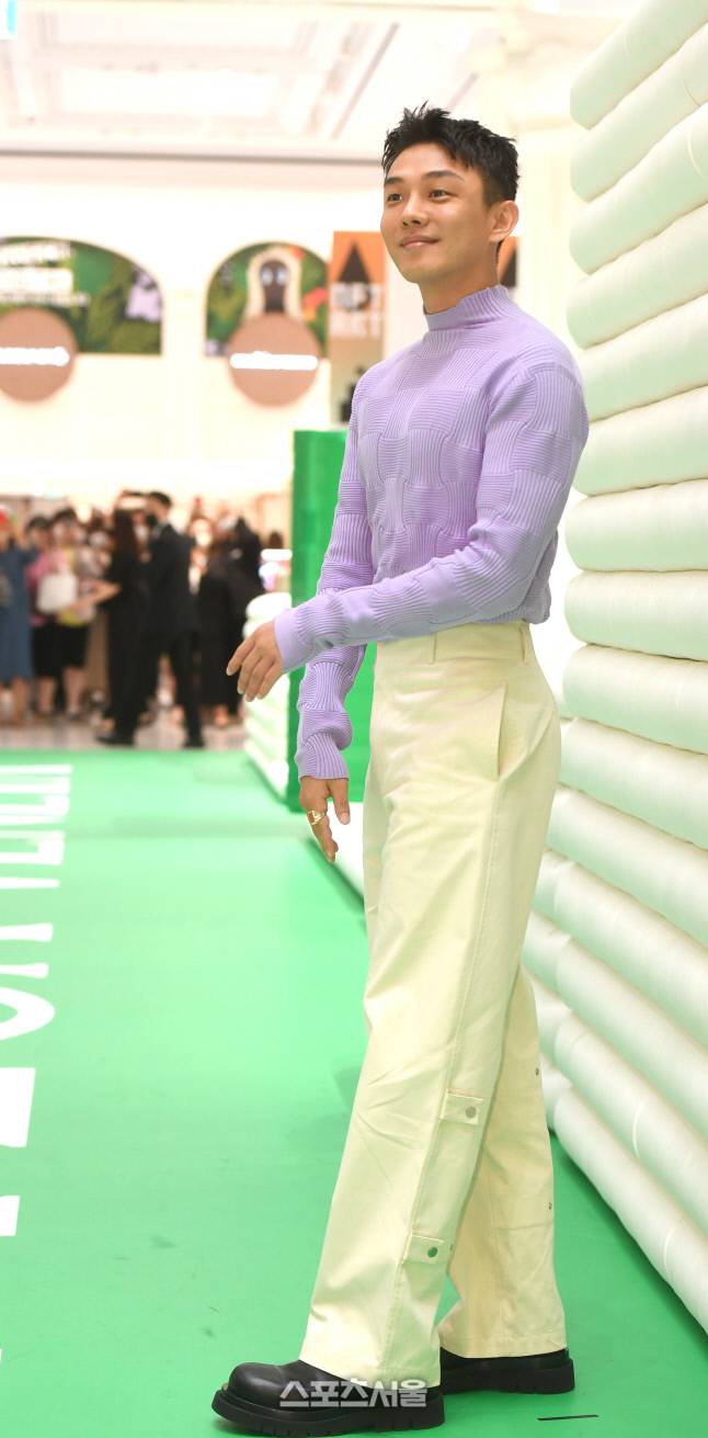 유아인이 23일 서울 신세계백화점 강남에서 열린 한 패션 브랜드 팝업스토어 오픈행사에 참석해 포즈를 취하고 있다.