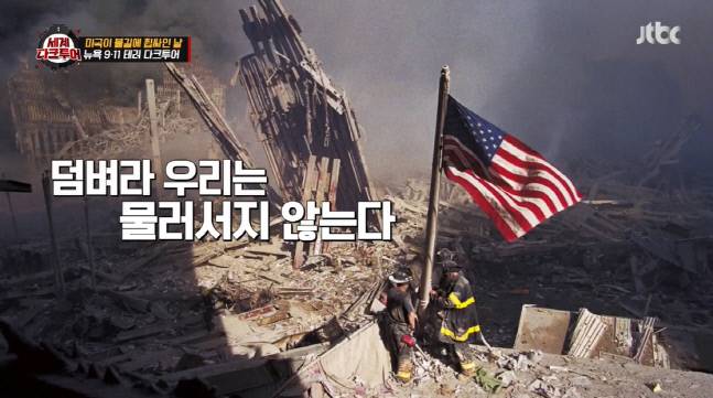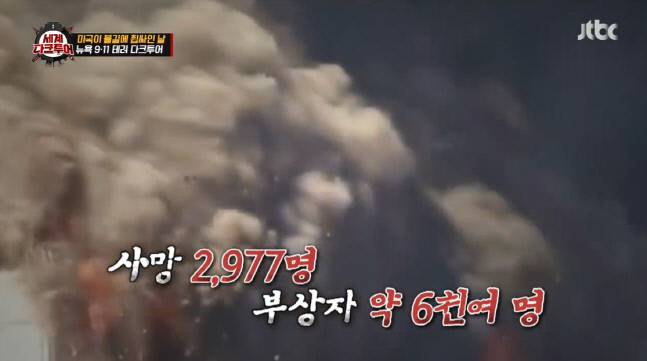 23일 방송된 JTBC ‘세계다크투어’에서 2001년9월11일 미국 뉴욕에서 벌어진 끔찍한 테러 현장을 갔다. 사망자 2977명, 부상자 6291명이 발생한 사상 최악의 테러는 전세계에 동시 타진되며 엄청난 충격과 공포를 몰고 온 바 있다.