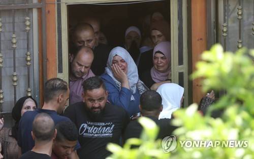 epa10029946 Palestinian relatives of Nabil Ghanem, 53, mourn during his funeral in Sara village near the West Bank city of Nablus, 23 June 2022. The Israeli military authorities on 23 June returned the corpse of Nabil Ghanem to his family for burial. According to Palestinian health ministry, Ghanem, a father of six children, was shot and killed by Israeli soldiers on 19 June as he tried to cross a fence separating the West Bank and Israel near Qalqilya. EPA/ALAA BADARNEH