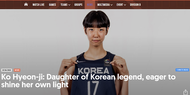 FIBA는 지난 23일(한국시간) "한국농구 전설의 딸"이라는 제목으로 고현지를 소개하는 기사를 게재했다.