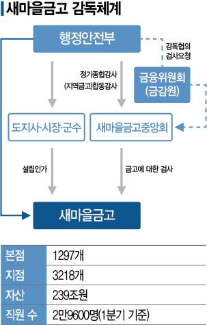 반면 금융위원회 소관 기관인 신용협동조합의 경우 경제·신용·공제사업 전반에 대한 감독권을, 주무부처가 각기 다른 농업협동조합·수산업협동조합·산림조합의 경우 신용·공제사업에 대한 감독권을 금융감독원에 부여하고 있다. 김상봉 한성대 경제학과 교수는 "핀테크 업체들도 금감원의 감독체계 안에 편입되고 있는데, 새마을금고만 예외일 순 없다"며 "다른 업무는 기존처럼 행안부가 담당하더라도 최소한 금융 관련 사업의 감독권은 금감원으로 이관할 필요가 있다"고 전했다.