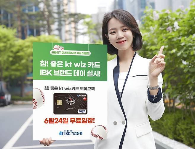 IBK기업은행은 프로야구 제휴카드인 '참! 좋은 KT 위즈(WIZ) 카드' 보유 고객 대상 'IBK 브랜드 데이' 이벤트를 실시한다고 24일 밝혔다.