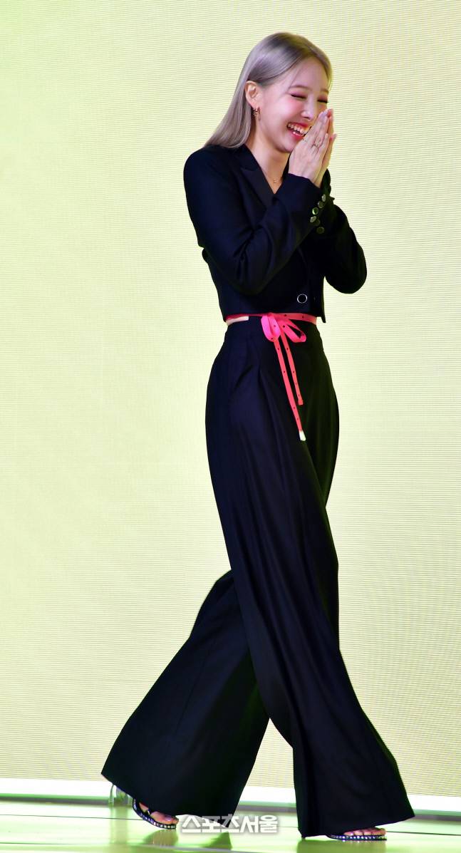 나연은 여의도 페어몬트 앰버서더에서 기자간단회를 열어 솔로앨범 ‘IM NAYEON’과 타이틀곡 ‘POP!’등 7곡을 공개하며 자신감 넘치는 무대를 선보였다.2022.6.23.