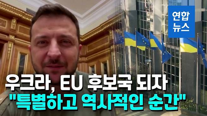 회원국 정상들이 23일(현지시간) 우크라이나에 EU 가입 후보국 지위를 부여하는 데 합의했습니다.
