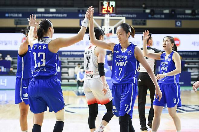 우리은행은 점점 톱니바퀴 같은 조직력을 보여줬다. 정규리그 2위로 2021~2022 시즌 종료. 4강 플레이오프에서 인천 신한은행을 꺾었다. 그러나 챔피언 결정전에서는 체력과 전력의 열세 때문에 청주 KB스타즈를 넘지 못했다.