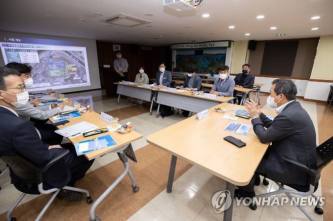 (서울=연합뉴스) 유제철 환경부 차관이 24일 경기도 구리시 하수처리장을 방문하여 업무 현황을 보고받고 있다. 2022.6.24 [환경부 제공. 재판매 및 DB 금지]