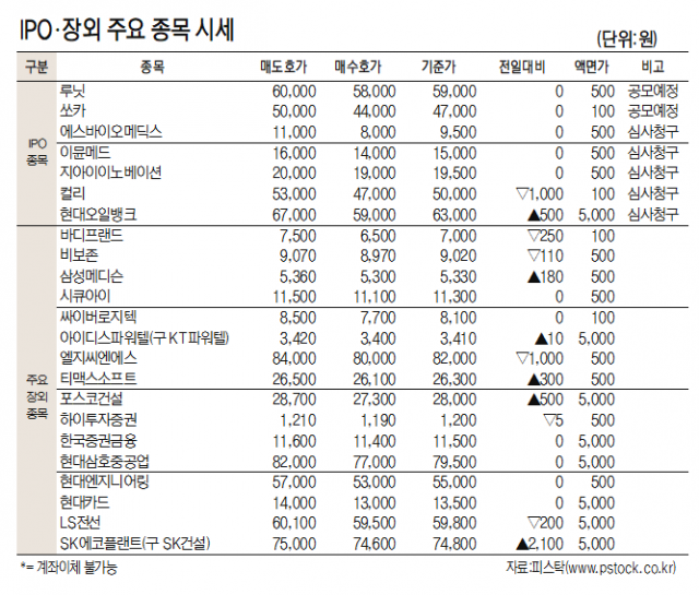 - [표]IPO장외 주요 종목 시세(6월 23일)