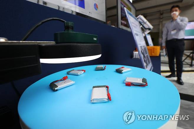 (서울=연합뉴스) 신현우 수습기자 = 24일 오후 서울 강남구 코엑스에서 열린 '2022 서울 국제 스마트팩토리 컨퍼런스 & 엑스포'에 딥러닝 비전 검사 소프트웨어로 구현한 제품이 전시돼 있다. 2022.6.24