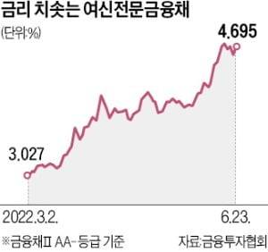 인플레이션과 통화긴축으로 채권 금리가 연일 치솟으면서 카드사 캐피털사 등 여신전문금융회사가 '돈맥경화' 우려에 빠졌다.
