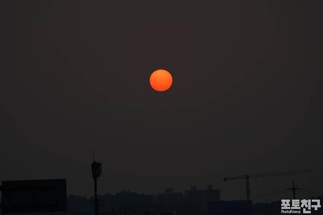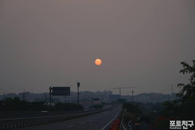 눈앞에 펼쳐진 빨간 일몰의 모습이