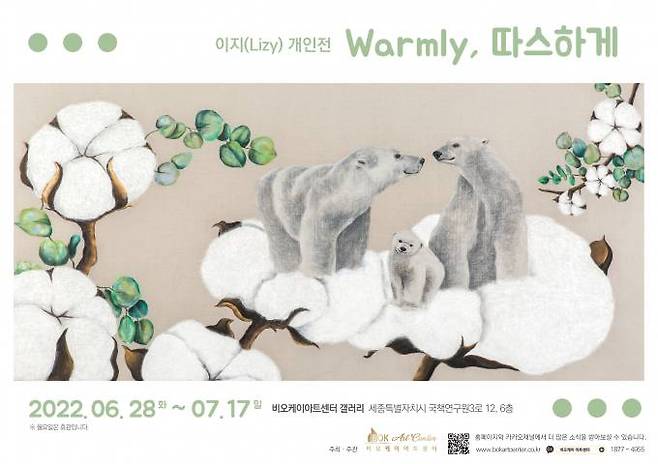 이지 개인전 <Warmly, 따스하게>는 ‘내가 소망하는 것, 희망과 사랑을 나누는 것’의 속 마음이 관람객에게 닿기를 바라며 속삭이고 있다. 전시는 6월 28일부터 7월 17일 오전 10시부터 오후 7시까지(월요일 휴관). 관람은 무료. 비오케이아트센터 6층 갤러리에서 만나볼 수 있다.
