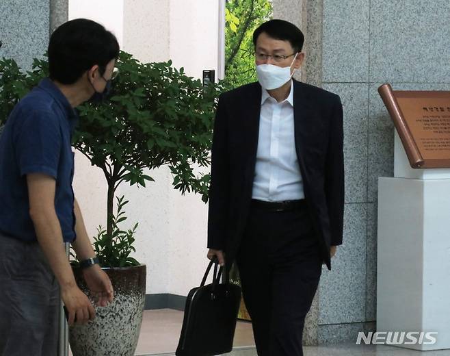 [인천=뉴시스] 김동영 기자 = 정봉훈 해양경찰청장을 비롯한 치안감 이상 간부들이 서해 피격 공무원과 관련 종합적인 책임을 통감하면서 사의를 표명한 24일 오후 정 청장이 인천 연수구 해양경찰청에서 퇴근하고 있다. 2022.06.24. dy0121@newsis.com