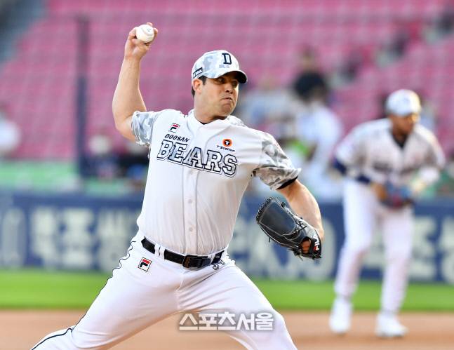 두산 외국인투수 스탁이 24일 잠실구장에서 열린 2022프로야구 두산베어스와 KIA타이거즈의 경기에서 선발역투하고 있다.2022.6.23.